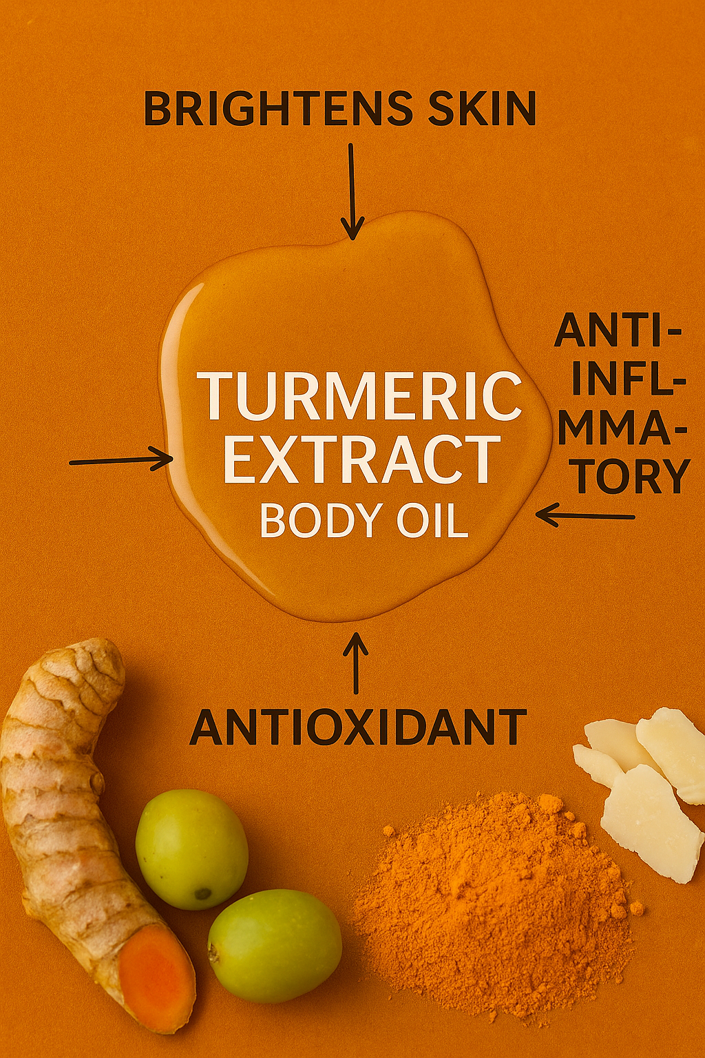 Ground your skin in nature with this luxurious body oil, infused with turmeric extract to soothe and brighten. The fast-absorbing formula works to restore your skin's natural radiance while locking in moisture for a soft, glowing finish. Rich in antioxidants, this oil helps combat environmental stressors and promotes an even, healthy-looking complexion. Perfect for daily use, it leaves your skin feeling nourished, smooth, and rejuvenated, with a lightweight feel and a natural glow.
